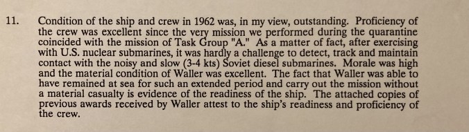 Brian didn’t mention the commendation letter in the memorandum that he prepared for the military historian. However, you will see his brief assessment about the Waller‘s readiness to perform its duties: