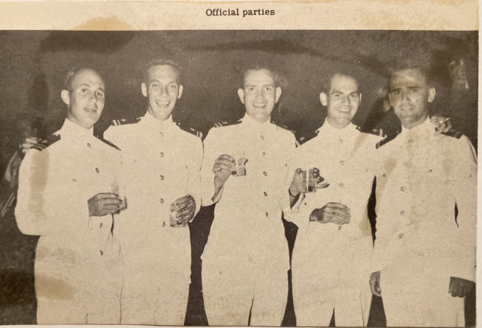 From the album, here’s a photo of young officers aboard the Waller. Brian is on the far right.