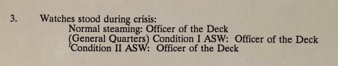 So that, dear readers, is part of what “(General Quarters) Condition I ASW” was all about during the Cuban Missile Crisis.