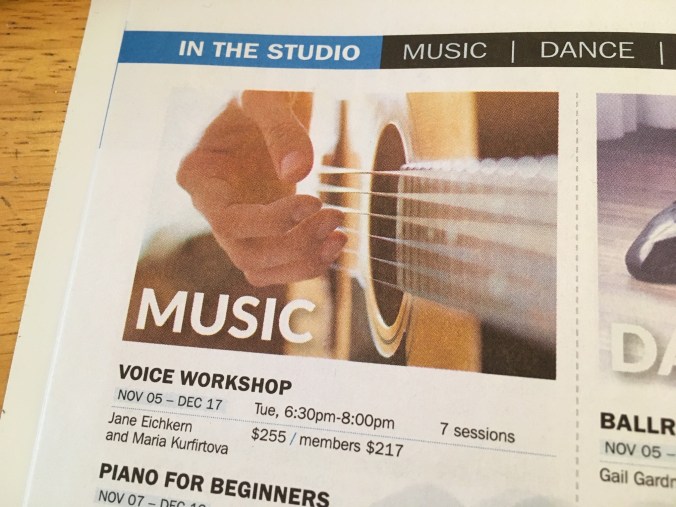 As the school year was coming to an end, I was looking for something fun, different, and distinctly non-legal to do. I had picked up a catalog from the Boston Center for Adult Education (BCAE) and saw a course listing for “Beginning Voice,” accompanied by a short description explaining that learners would sing in a mutually supportive setting. Although I had never done any formal voice instruction before, I had always enjoyed singing, and from the description I assumed this would be like a group chorus experience. On a whim, I signed up.